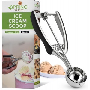 BUILT TO LAST constructed from solid, rust resistant, stainless steel that won’t bend or break; strong scraper helps eject stubborn and difficult ingredients out of the scoop; features an easy to press, strong spring loaded trigger action release for..