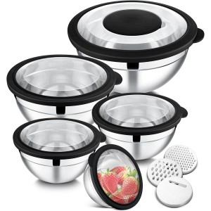 【Premium Stainless Steel Mixing Bowl Set】 Our mixing bowls with lids set are Made of food-grade stainless steel, resistant to rust, corrosion, and spots. The mixing bowls use a mirror-polished interior that is smooth, non-stick, and easy to clean. Th..
