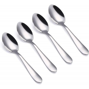 Kids tableware service set including 4 dinner spoons. Spoon set is heat-treated, durable 18/10 stainless steel construction. BPA FREE, NON-TOXIC PRODUCT.Set of 4 silverware for children is dishwasher-safe and tarnish-resistant.Luxury mirror polish an..