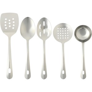 A COMPLETE SET INCLUDES One 9-inch serving spoon, one 9-inch slotted serving spoon, one 9-inch serving ladle, one 9-inch skimmer and one 9-inch turnerSTAINLESS STEEL SERVING SET Meticulous details matter to the hostess with the mostest. This starter ..
