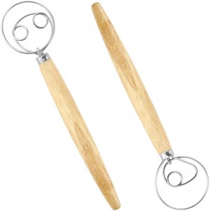 High Quality Material These danish dough whisks are made of food grade rustproof stainless steel and with wooden handle, smooth surface, won’t break or bend easily, durable for long tern use..Package You will get 2 pieces of bread dough mixers, one i..