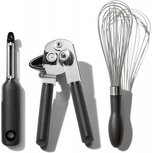 Set includes Peeler, Can Opener and WhiskSwivel Peeler has Japanese stainless steel bladeCan Opener has soft handles and knob for comfort and easeWhisk handle and wire construction are designed for efficient mixingFeature signature non-slip grip and ..